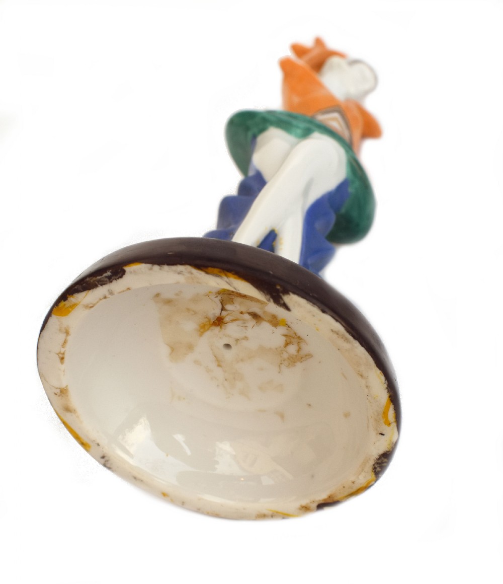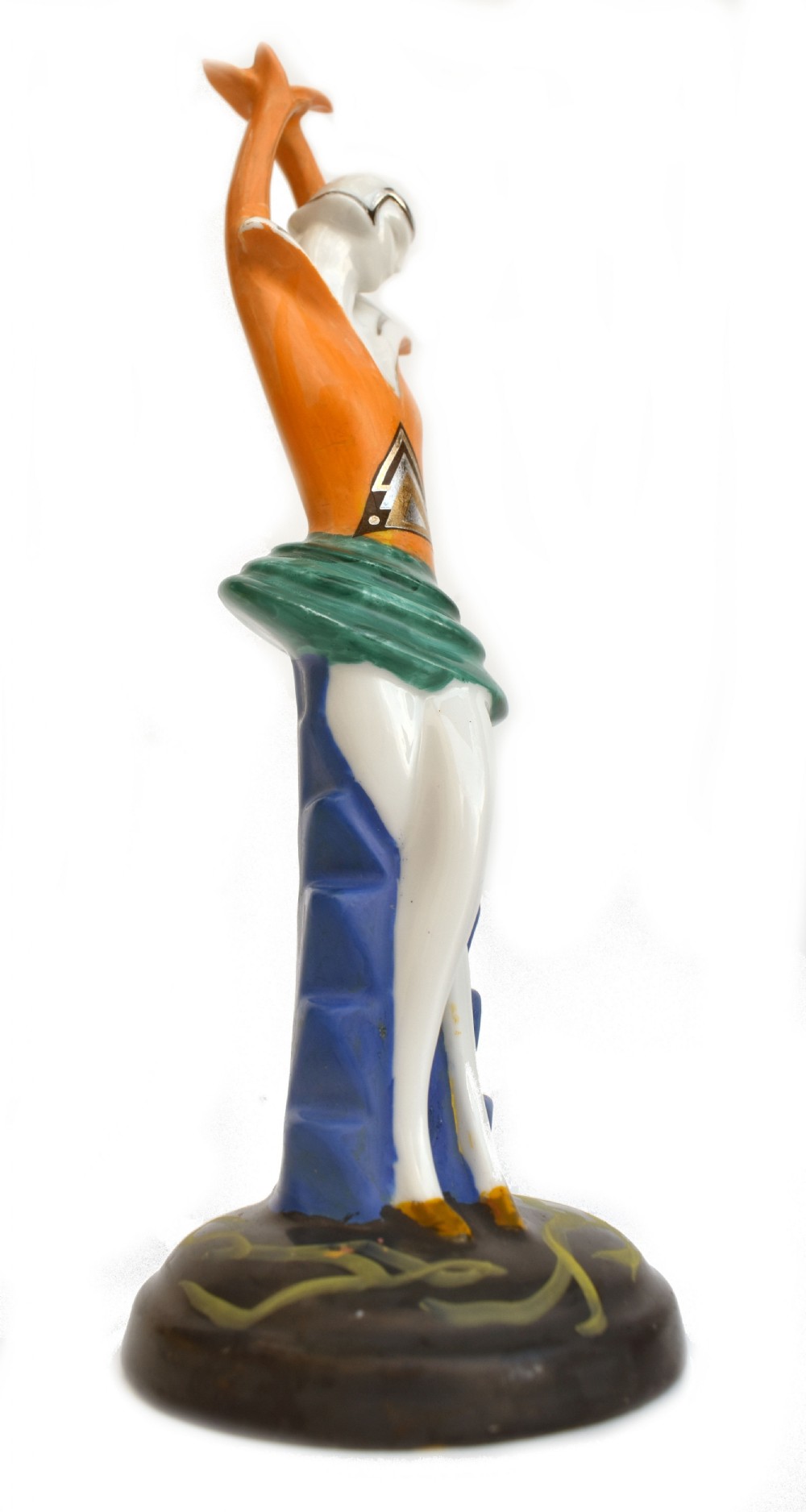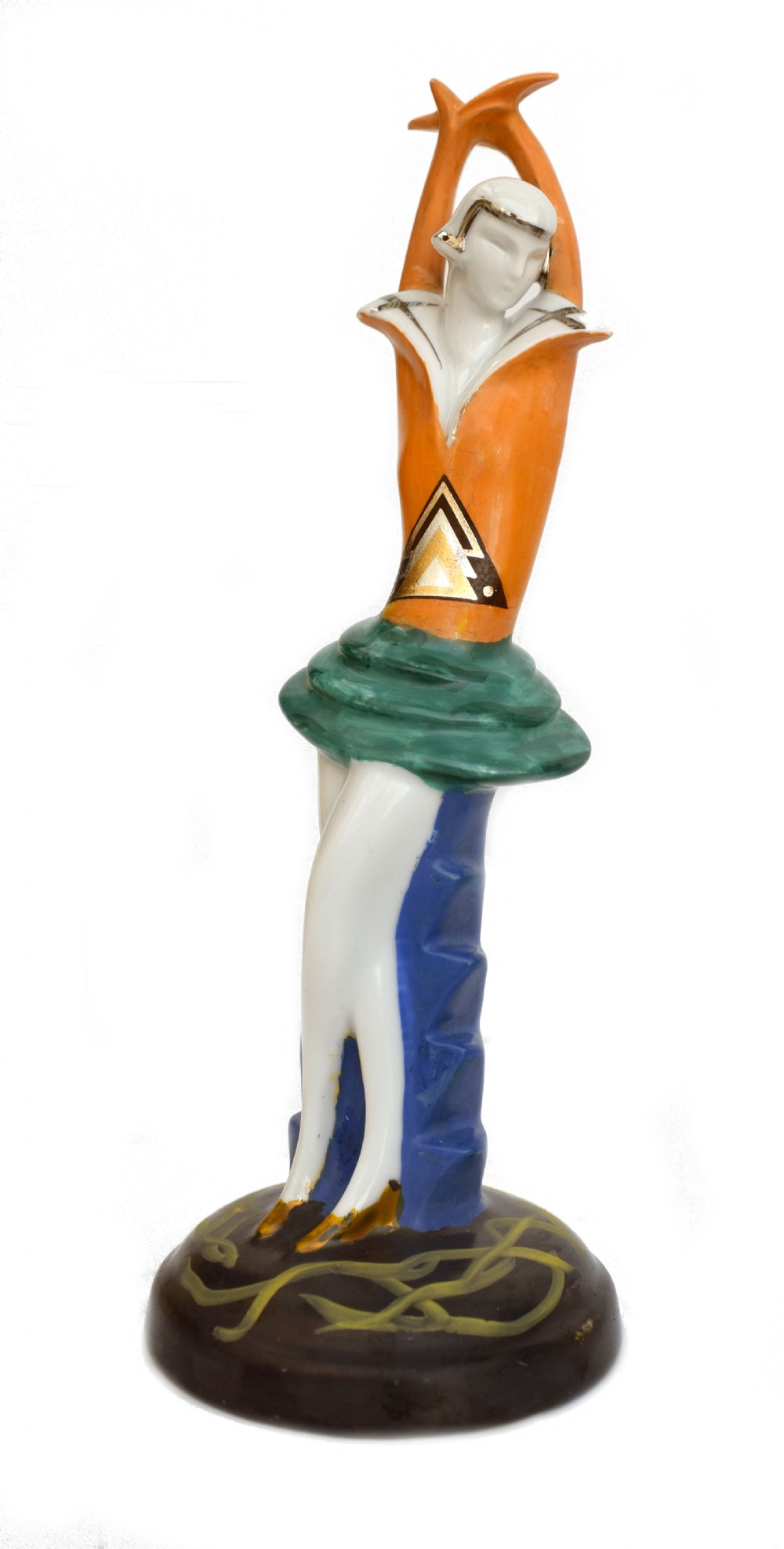 For your consideration is this very iconically styled original Art Deco porcelain figure depicting a female dancer in pose. Beautifully and vibrantly hand painted. Very unusual figure that couldn't be mistaken for any other era and we know Art Deco collectors will appreciate this. She's in excellent condition and free from any damage. There are no makers marks but she's very likely to be either French or German in origin. She's a good size and will display perfectly, she certainly won't disappoint. FREE UK mainland delivery UK customers: we want you to be delighted with your purchases from us and so we offer a full money back guarantee (items must be returned within 14 days in same condition as when sent) if you are not fully satisfied with your purchases from us for what ever reason and would like to return them. Please note : Shipping costs are not refundable. Refunds are only issued once an item has been returned back to us. Refunds are issued within 48 hours in receipt of return.