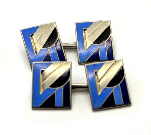 Art Deco Mens Geometric Enamel Cufflinks, c1930