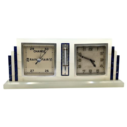Art Deco Onyx Clock, Barometer And Thermometer,