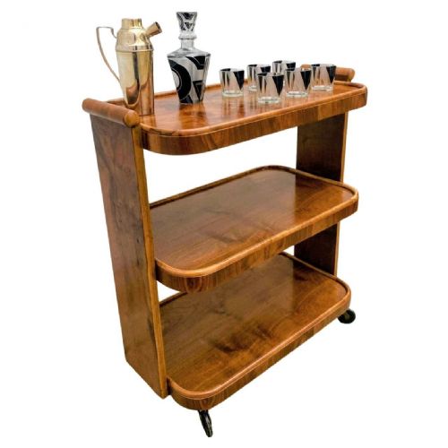 Art Deco Walnut Three Tier Drinks Trolley