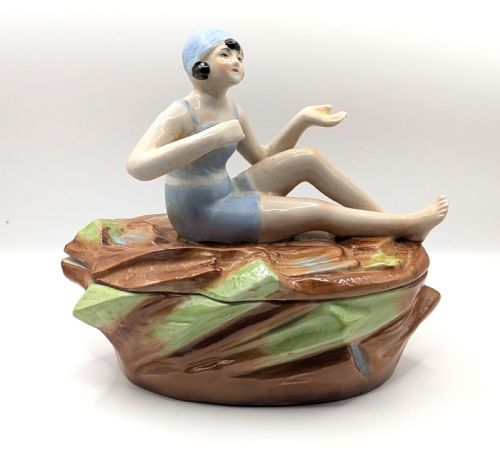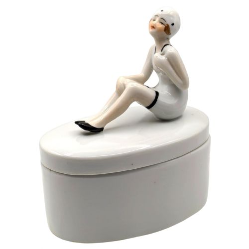 Art Deco Ceramic Bathing Belle Trinket Powder
