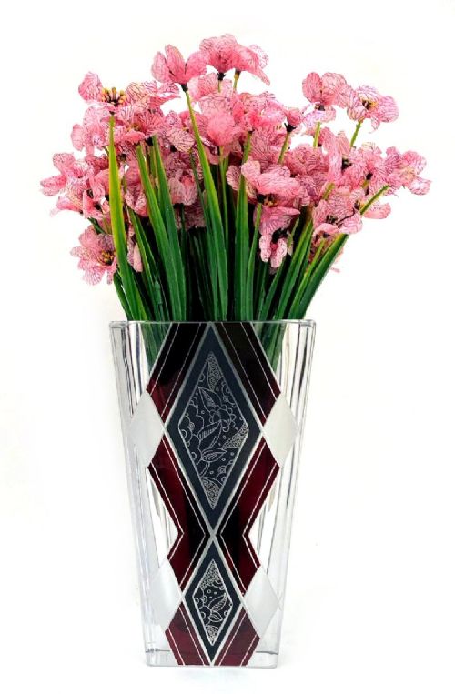 Art Deco Glass and Enamel Etched Geometric